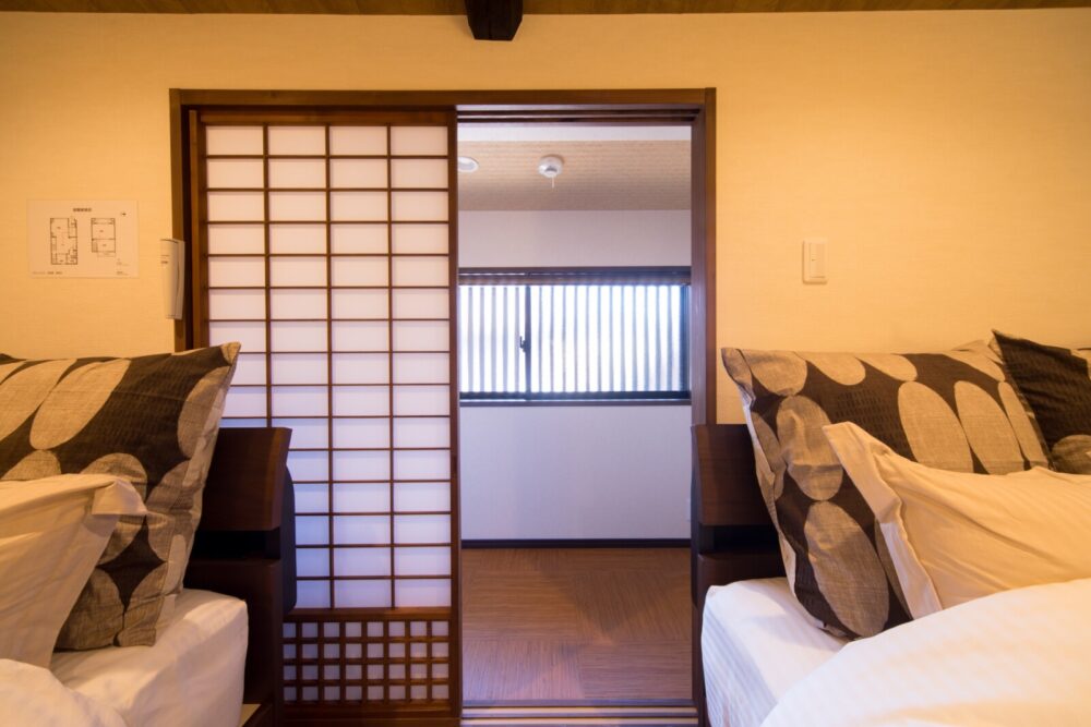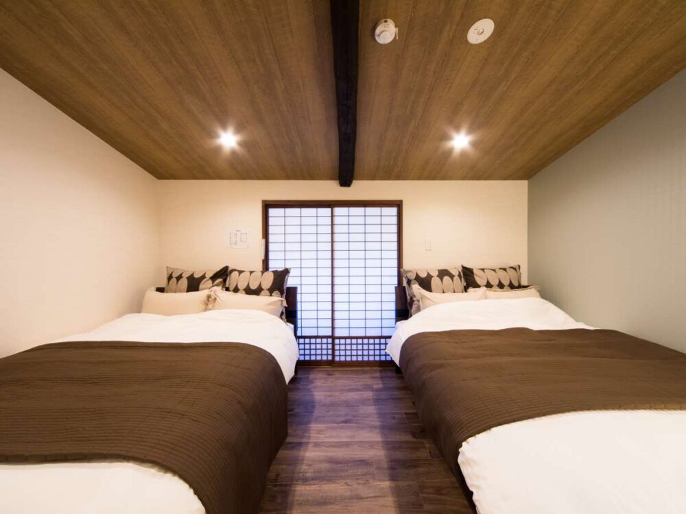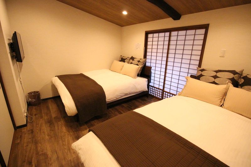 2 bedrooms (a Western-style room with 2 double beds and a Japanese-style room with futons)