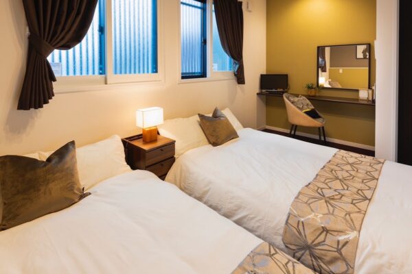 *For 1 or 2 persons, a bed will be provided in the Western-style bedroom; for 3 persons, a Japanese style floor mattress will be added in the Japanese-style bedroom. Please let us know at the time of reservation if you have any requests.