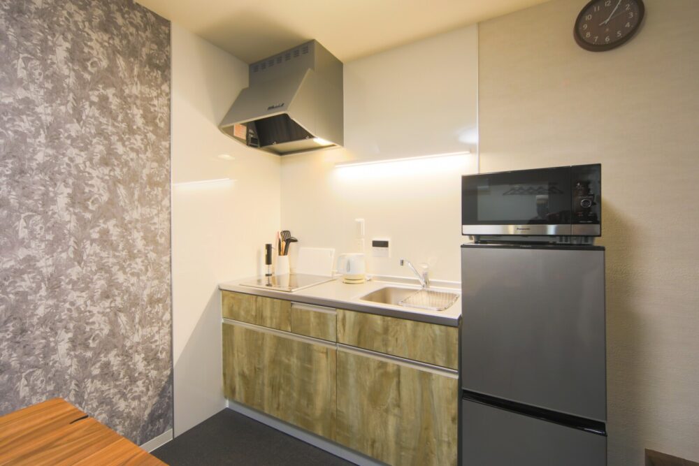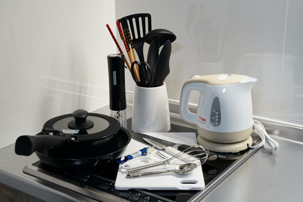 キッチン(冷蔵庫、電子レンジ、トースター、炊飯器、電気ケトル)
