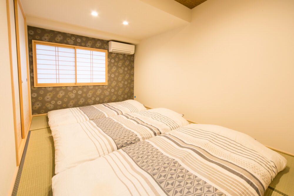 2名様までのご予約の場合はベッド2台のご用意、3名様以上の場合は敷布団を1組ずつ、3組まで追加します。