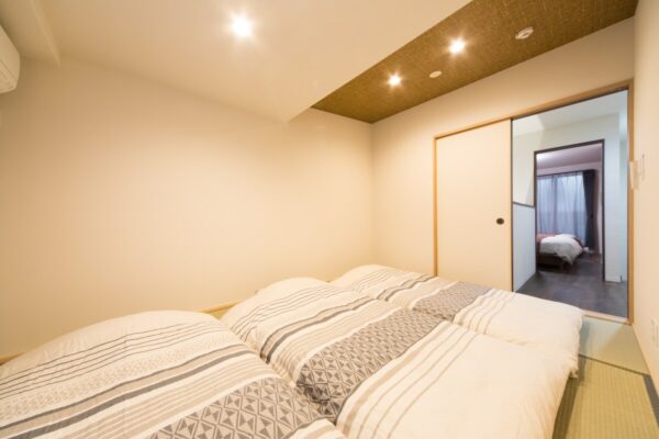 寝室×2(ダブルベッド2台のお部屋と敷布団3組敷ける和室)